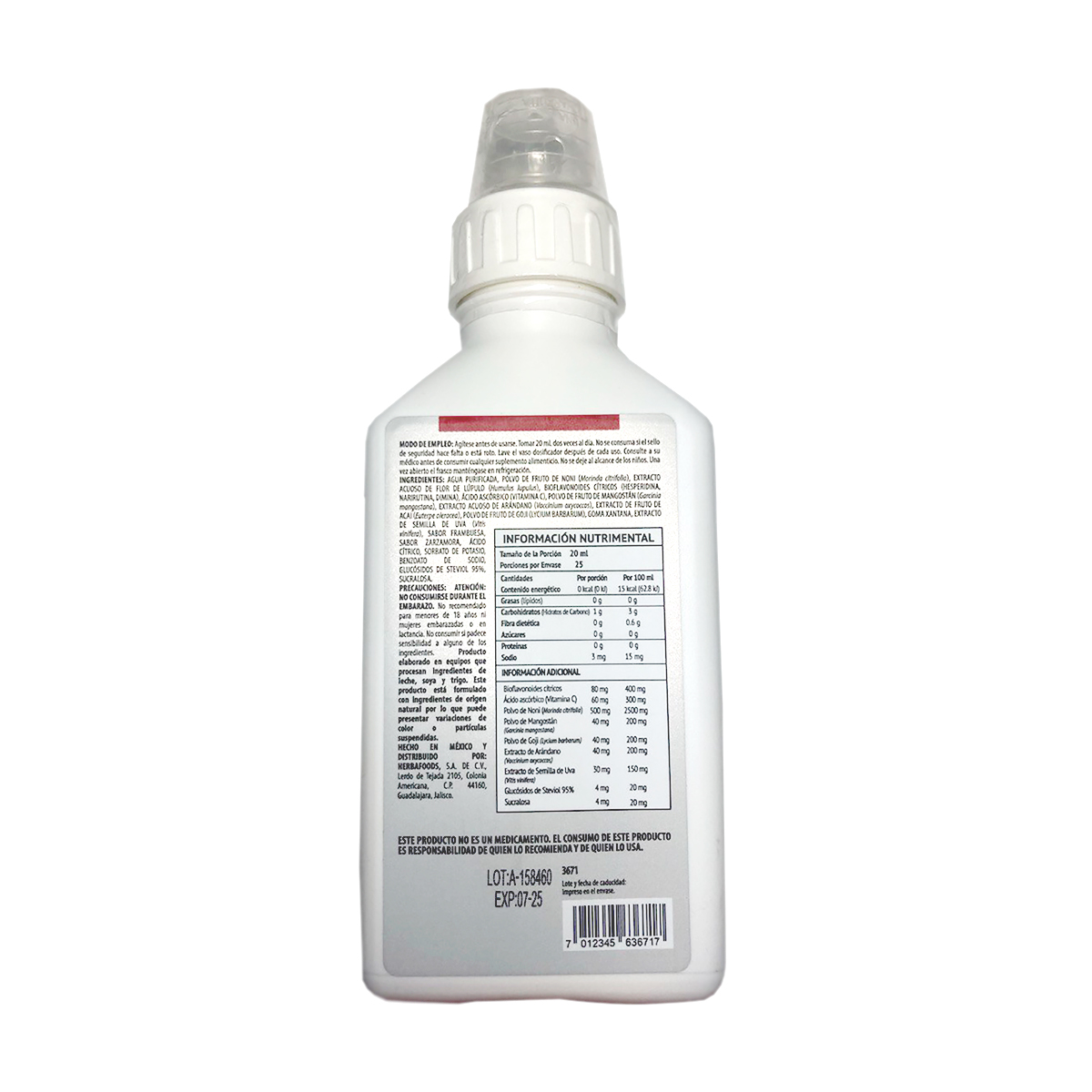 Modo de empleo: Tomar 20 ml diluido en 250 ml de agua 2 veces al día (antes del desayuno y cena).